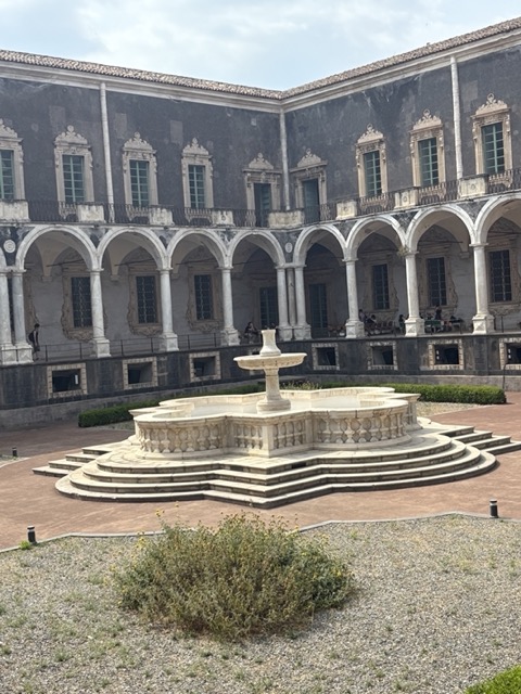 나는 카타니아에서 유명하다는 카타니아 대학교를 방문했다. 카타니아의 역사는 기원전 8세기에 시작됐다. 이곳은 중세시대 문화의 중심지였다고 한다. 특히 1434년에 지어진 카타니아 대학교는 시칠리아에서 가장 오래된 대학교이다. 화산과 지진 피해로 인해 지속적으로 재건되었다. 이곳은 18세기 양식의 건물이 많고, 로마제국 시대에 순교한 성 아카타의 유물이 있다고 한다. 또한 바로크 양식 건축물은 유네스코 지정 세계문화유산에 등록되어 있다.