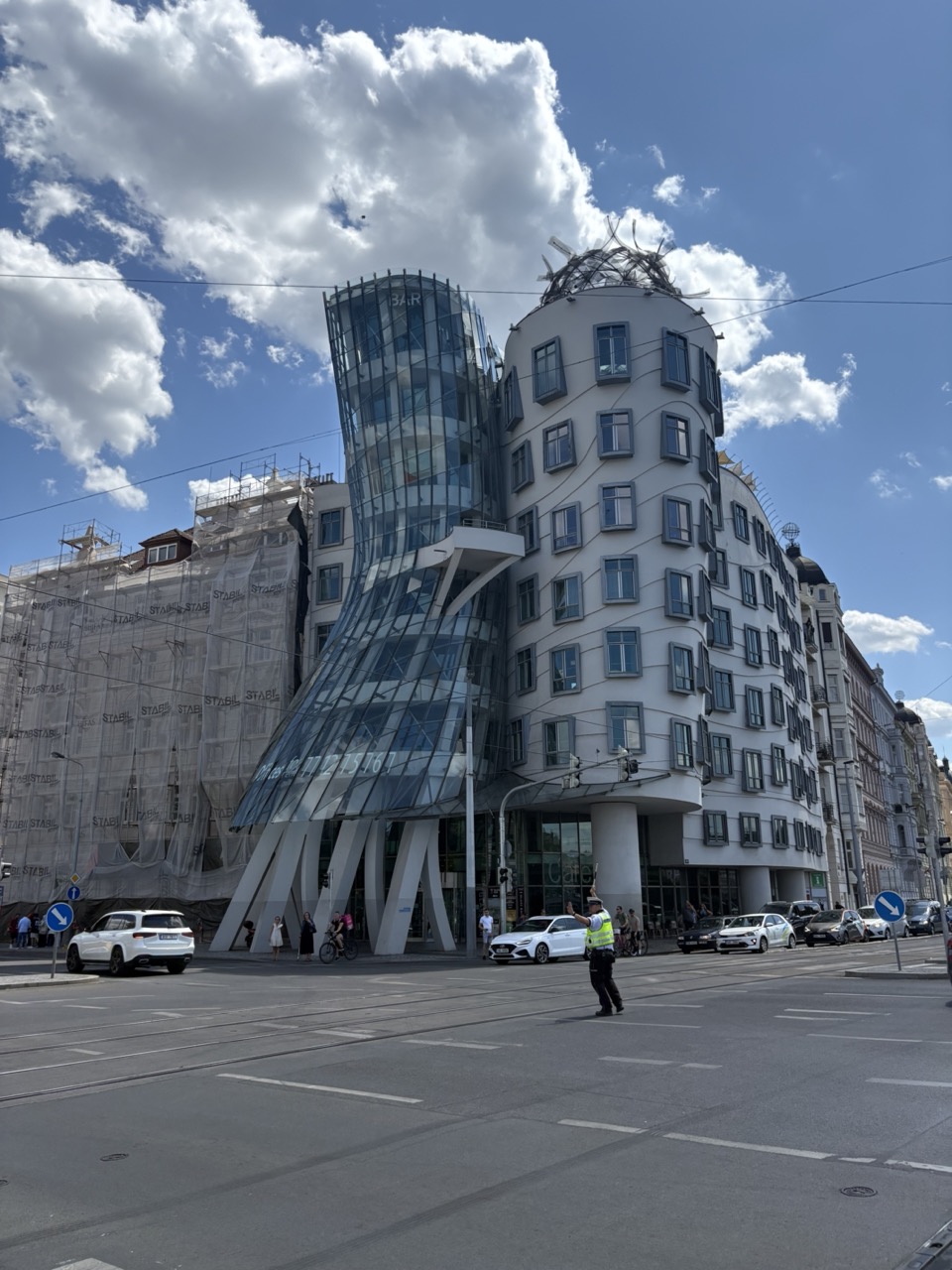 두 번째로 찾아간 곳은 Tančící dům 댄싱하우스이다. 세계적인 건축가 프랭크 O. 게리가 프라하에 설계한 건물로, 마치 남녀 댄서가 춤추는 듯한 독특한 곡선 형태의 현대 건축물이다. 2차 세계대전 폭격으로 파괴된 부지에 체코의 새로운 시작을 상징하며 지어졌다고 한다. 현재는 아름다운 전망을 자랑하는 호텔, 레스토랑으로 사용되고 있다. 이 건물은 프라하의 역사적 배경 속에서 현대적인 대담함과 해체주의 건축의 특징을 보여주는 상징적인 랜드마크이다.