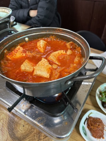 각 자리마다 김치찌게가 미리 준비되어 있었다.