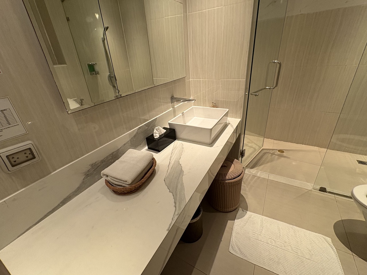 샤워실이 엄청 넓고 필요한 것들이 잘 갖춰져 있었다.