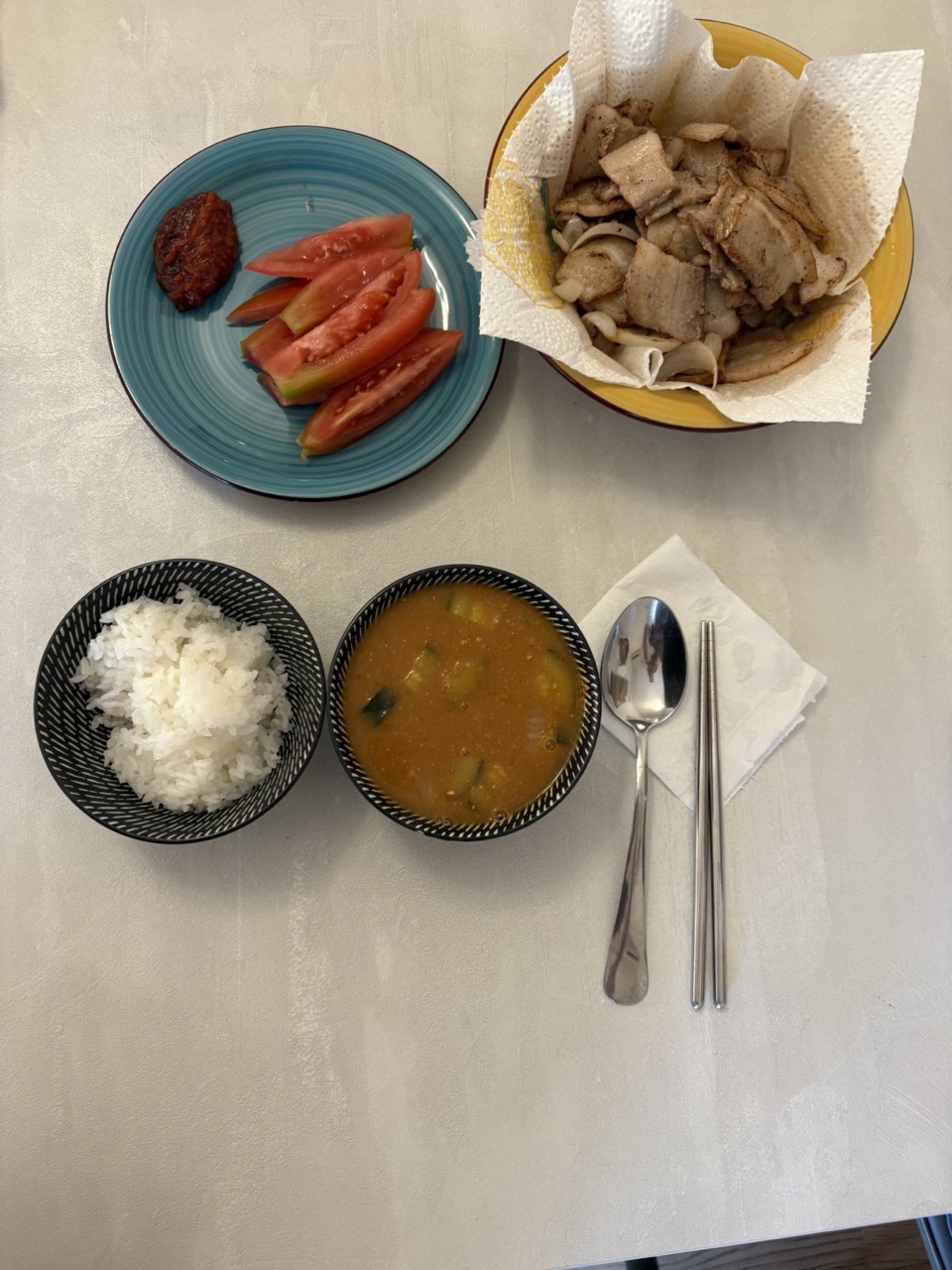 간단하게 삼겹살과 된장찌게를 끓여먹었다.